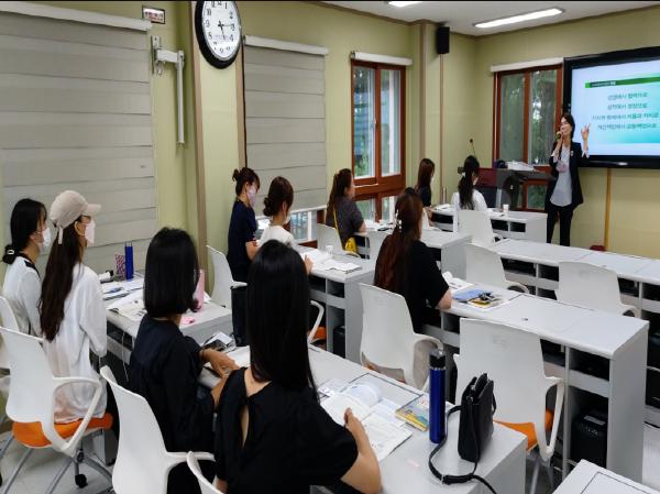 제주유아교육진흥원(원장 양축선)은 8월 3일(월)부터 8월 4일(화)까지 ‘사례로 보는 2019개정누리과정 적용 교원 직무연수’를 실시하였다. 공?사립유치원 교원 78명이 신청하여 코로나19 확산 방지를 위해 연수 과정을 2회기(회기별 39명)로 나누어 개설하고 연수실을 2곳으로 분리하여 실시하였다.