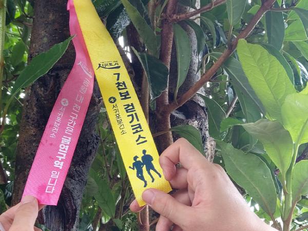 서귀포보건소가 시민 걷기 실천율 향상을 위해 걸매생태공원에서 칠십리시공원 전망대까지 하루 7천보 걷기 코스 조성과 안내 리본 부착을 완료하고 매주 걷기 실천을 유도해 나가기로 했다.