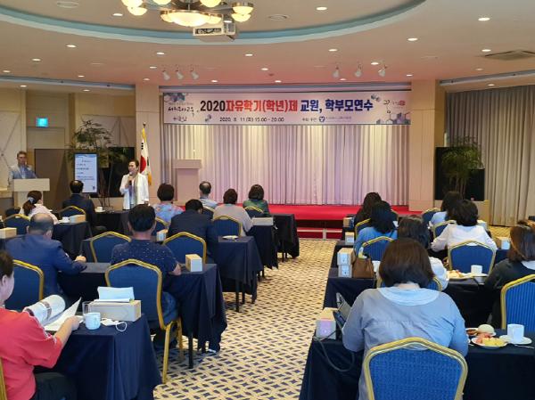 서귀포시교육지원청(교육장 강경숙)은 지난 8월 11일(화) 서귀포KAL호텔에서 자유학년제 및 2학기 자유학기제 운영을 앞두고 있는 서귀포시 관내 15개 중학교 교감, 자유학기(년)제 담당교사 45명과 학부모 45명을 대상으로 ?학년도 자유학년제 확대 방안을 위한 교원·학부모연수’를 실시하였다.