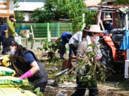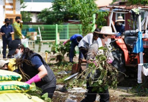 수해 복구에 영부인도 구슬땀을 흘리고 있다.