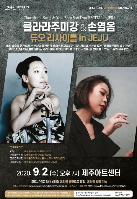 세계 유수의 콩쿠르를 석권하며 대한민국 클래식을 대표하는 젊은 거장의 반열에 오른 바이올리니스트 클라라주미강과 피아니스트 손열음의 듀오 리사이틀이 제주아트센터에서 개최된다.