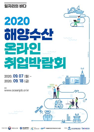 해양수산부(장관 문성혁)는 9월 7일부터 9월 18일까지 ‘2020 해양수산 온라인 취업박람회’를 개최한다. 이번 박람회는 해양수산부, 부산광역시, 부산테크노파크, 중앙대학교 국제물류전문인력 네트워크사업단이 공동으로 주최·주관하며, 부산경제진흥원과 벡스코가 후원한다.