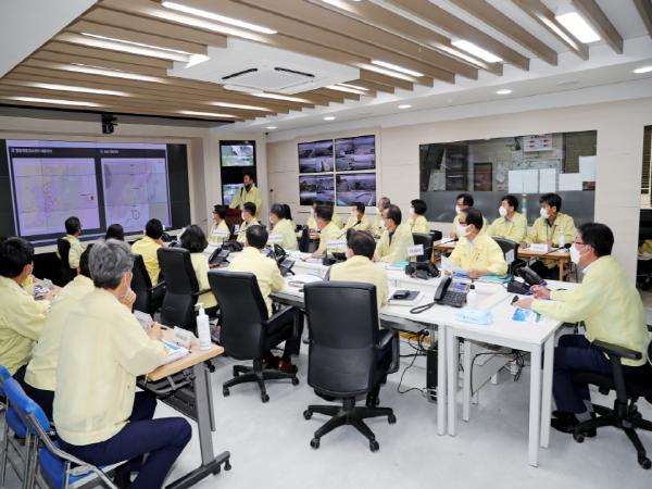 제주시에서는 제9호 태풍‘마이삭’대비 피해 최소화를 위해 9월 1일 오후 2시 30분 안동우 시장 주재로 상황판단회의를 개최하여 부서별 태풍대비 조치사항을 점검하고 향후 대응계획을 논의하였다.