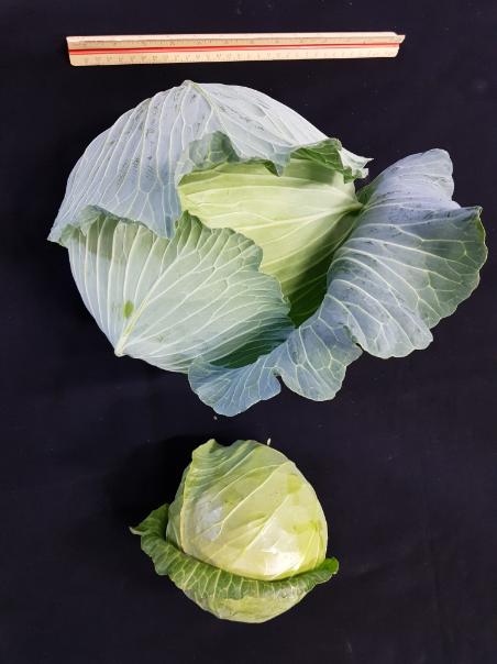 소규형양배추는 무게가 0.8~1.2kg으로 기존 양배추 3~4kg 보다 무게와 크기가 1/4 수준이나 당도가 높고 잎이 얇아서 생식과 샐러드용으로 인기가 높다.