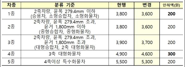 이에 따라 최장거리 운행 기준 통행료 수준은 현재 재정 고속도로 대비 1.23배에서 1.16배 수준으로 낮춰지게 된다.