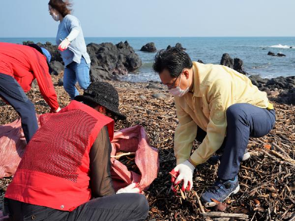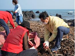 현장점검 후 해안쓰레기 수거에 참여한 고영권 정무부지사는 “신속한 피해복구를 위해 지난해 효과를 낸 긴급농가지원대책 등을 바로 적용할 수 있는지 우선 검토하고 있다”면서 “피해 복구 과정에서 2차 사고가 발생하지 않도록 안전조치도 철저히 마련해 달라”고 당부했다.