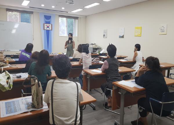 한편, 이번 프로그램은 도서관이 사회적 거리두기 2단계로 도서관 내 20인 이하 교육이 가능해짐에 따라 운영되고 있으며, 수업 전 참가자 일일 건강 상태 점검, 발열체크, 손 소독 실시, 마스크 착용, 1인 1책상 사용 등 감염병 예방 수칙 준수하여 참가자들이 안전하게 수업에 참여 할 수 있도록 하고 있다.