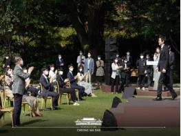 이와 함께 문재인 대통령은 "우리 청년들은 비대면 중심의 포스트 코로나 시대를 가장 빠르고 유연하게 받아들일 수 있는 세대"라고 격려했다. 코로나 상황도 "한편으로 우리에게 절호의 기회일 수 있다"며 "이제 우리는 비로소 앞선 나라들과 함께 '포스트 코로나 시대’라는 ‘새롭고 동등한 출발선’ 상에 나란히 설 수 있게 되었다"고 설명했다.
