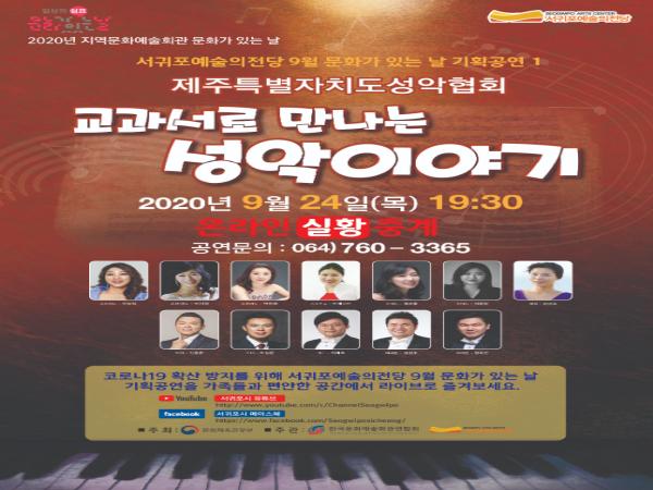 서귀포예술의전당은 9월 문화가 있는 날 기획공연인 통통 튀는 아트데이 in 서귀포 - 교과서로 만나는 성악이야기 공연을 오는 24일(목) 저녁7시 30분 서귀포시 유튜브 채널과 페이스북에서 온라인 생중계 한다고 밝혔다.