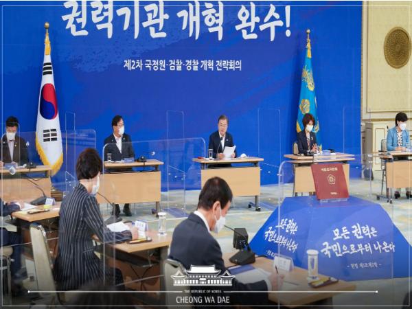 문재인 대통령은 21일 청와대에서 제2차 국정원·검찰·경찰 개혁 전략회의를 주재했다.