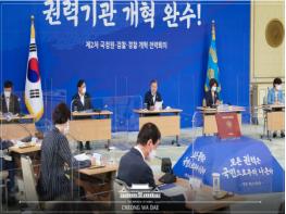 이와 함께 "권력기관 개혁은 어려운 일이지만 복잡하게 생각할 필요가 없다"면서 "조직을 책임지는 수장부터 일선 현장에서 땀 흘리는 담당자까지 자기 본분에만 충실할 수 있도록 하는 것이 권력기관 개혁"이라고 강조했다.
