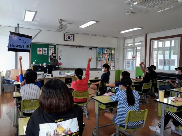 제주국제교육원(원장 강호준) 동부외국문화학습관은 지역 학생들에게 세계의 문화 및 영어 체험활동을 통하여 국제사회를 향한 열린 마음과 실용외국어 의사소통에 대한 자신감을 고취시키기 위하여 9월 21일(월) 풍천초 5~6학년 학생들을 대상으로 2020년도 제3회 ‘소규모·원거리학교지원 프로그램’을 운영하였다.