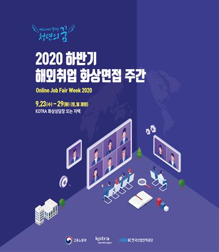 고용노동부와 대한무역투자진흥공사, 한국산업인력공단은 9월 23일부터 29일까지 7일간 "2020 하반기 해외취업 화상면접 주간" (Online Job Fair Week 2020)을 운영한다.