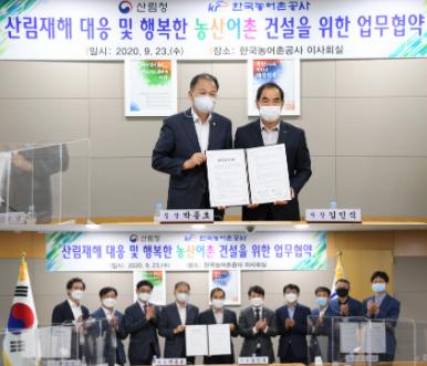 산림청과 한국농어촌공사는 23일 산림재해에 공동으로 대응하고 가치 있는 농산어촌 건설을 위한 업무협약을 체결했다.