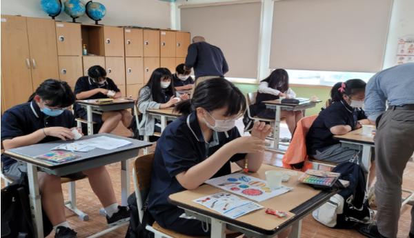 서부외국문화학습관 소속 원어민교사 2명이 직접 학교 현장을 찾아‘태양계 행성 팔찌 만들기’프로그램을 진행하였다. 1, 2교시에는 태양계 행성 크기 및 특징을 표현하는 문장을 익히는 활동을 하였고, 3교시에는 ‘태양계 행성 팔찌 만들기’체험을 하였다.