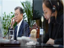이에 문 대통령은 “우리 정부는 한반도의 완전한 비핵화와 항구적 평화를 위해 계속 노력할 것”이라며 “그간 대통령께서 한결같이 우리의 한반도 평화 프로세스를 지지해 주셔서 감사하다”고 사의를 표했다.