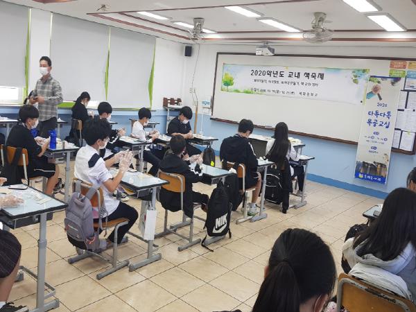 동녘도서관은 세화중학교 교내 책 축제 지원을 위해 학생들에게 책읽기와 관련한 목공 소품 만들기를 내용으로 ‘2020년 다독다독 목공교실’을 지난 10월 20일(화) 오후 3시 세화중학교에서 개강하였다.