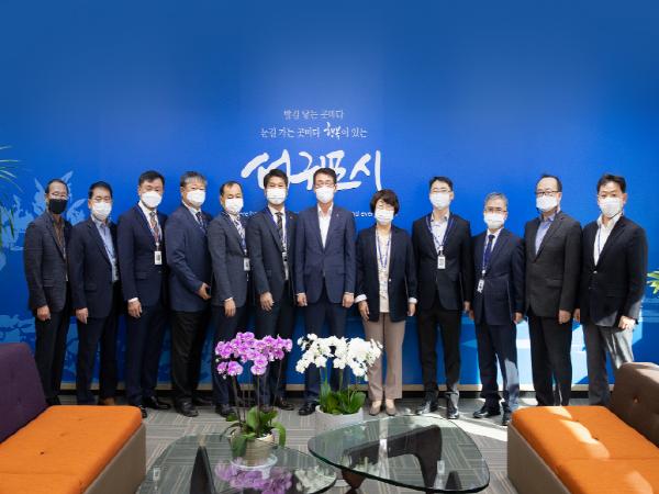 김태엽 서귀포시장은“앞으로는 관리자로서 지난 수십년간의 행정 경험과 노하우를 적극 활용하여 서귀포시 발전과 코로나19 장기화로 지쳐있는 시민들의 행복을 위해 중추적인 역할을 수행해 달라”고 당부하였다.