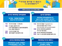 ‘2020 해외 Cheer-up 주간’은 장기화되고 있는 코로나 상황으로 인해 해외취업에 어려움을 겪고 있는 청년들에게 해외취업에 필요한 정보를 원스톱(One-Stop)으로 제공하여, 청년들의 해외취업을 응원한다.