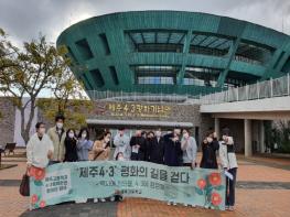 제주고등학교(교장 고용철) 4.3평화·인권동아리(ICU)는 지난 10월 24일(토) 4.3평화공원, 너븐숭이 기념관, 북촌일대를 답사했다. ‘ICU(I SEE YOU, 나는 당신을 바라봅니다)’는 제주4.3에 관심 있는 제주고 학생들이 만든 동아리로 70여년 전 제주 4.3을 평화·인권의 시각에서 새롭게 바라본다는 의미로 지어진 이름이다.