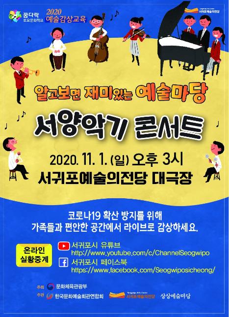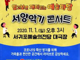 서귀포예술의전당은 어린이·청소년을 위하여 알고 보면 재미있는 서양악기 콘서트를 11월 1일 오후 3시에 개최한다고 밝혔다.