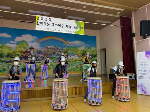 읍면지역 학생들에게 문화예술 감성 고취 및 체험활동의 기회를 제공하기 위해 실시하는 이번 프로그램은 한국무용, 소고춤, 우쿨렐레, 난타, 방송댄스(2), 댄스스포츠, 하모니카, 기타 총 9개 강좌가 진행되었으며, 16명의 분야별 전문 강사들과 함께 한마음초등학교 전교생이 참여하였다.