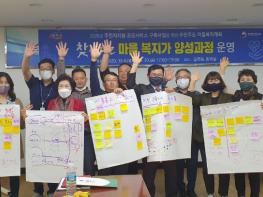 17개 읍면동에 특성에 맞는 마을복지계획 수립을 위한 이번 교육은 기존의 회의나 워크숍에서 탈피하여 참여자의 적극적인 참여를 이끌어내기 위해 전문 강사진행으로 마을주민이 지역의 과제를 확인하고, 아이디어를 창출하는 주민 참여 교육으로 만족도가 상당히 높았다.
