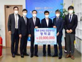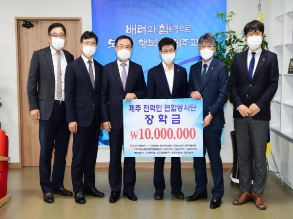 제주특별자치도교육청은 11월 10일(화) 제주전력인연합봉사단에서 도내 고등학교 학생 20명을 선발해 장학금 1인 50만원씩 1천만원을 지급했다고 밝혔다.