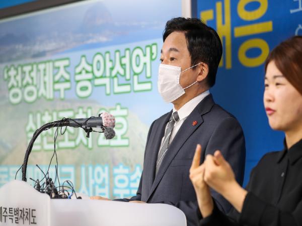 앞서 원희룡 지사는 지난 10월 25일 ‘청정제주 송악선언’(다음세대를 위한 제주의 약속)을 통해 “청정 제주를 지키기 위한 난개발 문제를 처리하는 데 있어 청정과 공존의 원칙을 적용하고 적법절차로 진행하겠다”고 발표한 바 있다.