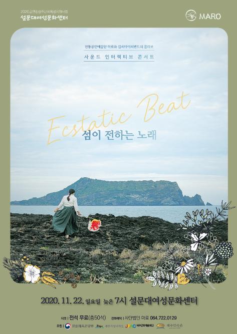 제주특별자치도 설문대여성문화센터가 오는 22일 오후 7시 센터 공연장에서 사단법인 마로의‘섬이 전하는 노래 Ecstatic Beat’를 공연한다.