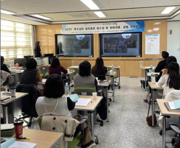 서귀포시교육지원청(교육장 강경숙)은 11월 21일(토), 11월 27일(금), 11월 28일(토) 3일간 '2020특수교육 교육과정 재구성 및 장애이해’교원 직무연수(15시간)를 도내 유·초·중학교 교원 20명을 대상으로 실시하고 있다.