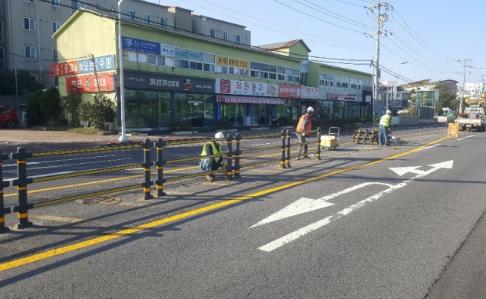 그러나 지난 여름 3회의 태풍으로 무단횡단금지시설의 전도 및 파손 피해가 발생함에 따라 제8호 태풍 ‘바비’의 무단횡단금지시설 복구 예비비 2억 3백만원을 및 제9호 태풍 ‘마이삭’ 및 제10호 태풍 ‘하이선’의 복구 예비비 1억 6천 8백만원을 11월 11일 사용 승인 받아 약 3.7㎞의 무단횡단 금지시설에 대하여 지난 11월 14일부터 복구공사를 시행중에 있다.