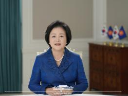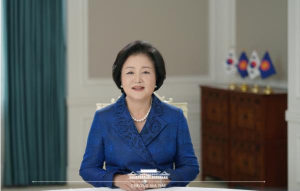 김정숙 여사는 축사를 통해 “코로나19로 인한 단절과 봉쇄의 경계들을 넘어, 지구 공동체를 지키기 위한 국제적인 연대와 협력이 절실한 시기”라며 “아세안 10개국을 방문하면서 아세안 청소년들과의 만남을 통해 한국과 아세안이 신뢰 속에 동반하는 미래를 확신했다”고 밝히고, “우리들이 어려움을 헤쳐 온 상생과 연대의 정신이 포스트 코로나 시대의 덕목이 되고 있으며 세계를 지속 가능한 공동체로 만드는 것은 다가오는 시간의 주인공인 청소년”이라고 말했다.