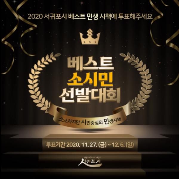 서귀포시에서는 11월 27일부터 12월 6일까지 10일간 소소하지만 시민중심의 민생시책, 일명 소시민 시책에 대해 온라인 국민정책참여 플랫폼인 ‘국민생각함(idea.epeople.go.kr)’을 통해 시민 온라인 선호도 투표를 실시한다.