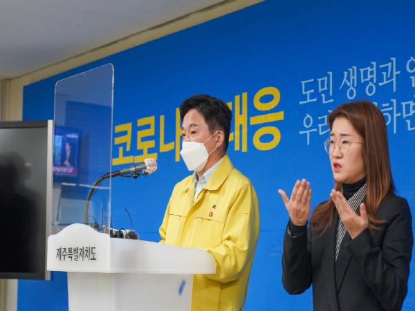 원희룡 지사는 이날 제주도청 3층 기자실에서 기자회견을 갖고 “겨울이 본격적으로 시작되면서 우려했던 3차 대유행이 현실화되고 있다”면서 “제주도는 전국단위 사회적 거리두기 격상 기조에 동참하고 모임과 이동이 많은 연말연시를 앞둬 도민의 생명과 안전을 지키기 위해 1.5단계 격상을 결정했다”고 설명했다.