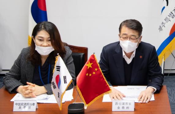 2일 상해시 충밍구와 개최한 화상회의에서 김태엽 서귀포시장은 코로나19 이후 변화하고 있는 관광산업의 패러다임에 대응하여 서귀포시를 웰니스 체류형 관광도시로 변화시키기 위한 비전을 제시하며 이와 관련한 폭넓은 교류를 제안했다.