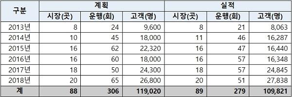 ‘팔도장터 관광열차’는 중소벤처기업부와 코레일이 공동으로 매년 지역 대표시장 20여곳을 선정해 정기 운행하는 전용열차로, 열차 이용객에게 요금 할인과 온누리상품권을 지급함은 물론, 기차역~전통시장까지 무료버스를 연계해 주변 관광지도 둘러볼 수 있도록 설계한 전통시장 맞춤형 관광상품이다.