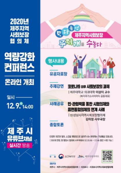 제주시 지역사회보장협의체에서는 12월 9일 2020년 제주지역사회보장협의체 역량강화 컨퍼런스를 온라인으로 진행한다고 밝혔다.