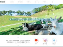 산지생태축산 웹사이트는 산지생태축산의 정책방향과 농장 및 제품안내, 정책소개 등 5개 메뉴로 구성되어 있다.