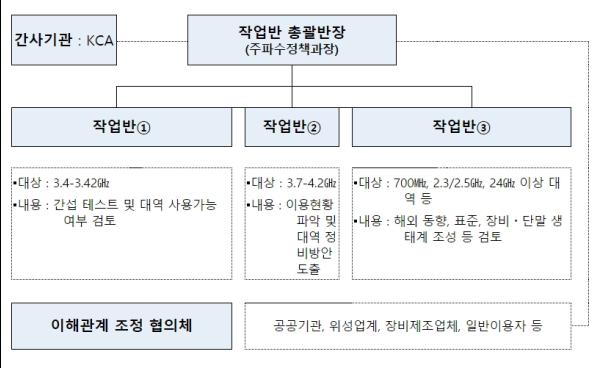 또한, 주파수 회수 및 재배치, 주파수 분배 변경 과정에서 기존 무선국 시설자 등 이해관계자 의견 수렴 및 협의·조정을 위해 쟁점사항별로 이해관계 조정 협의체를 구성·운영할 예정이다.
