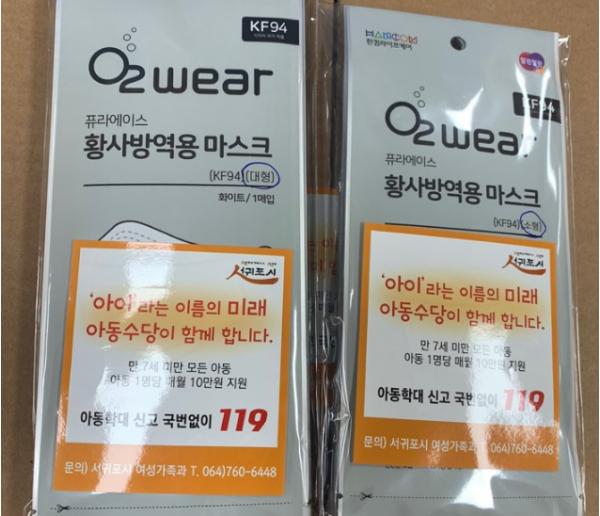 서귀포시(시장 김태엽)는 만 7세 미만 전 아동을 대상으로 매월 10만원씩 지원하고 있는 아동수당 홍보를 위한 코로나19 예방 마스크 6,650매(아동용, 보호자용)를 제작하여 오는 17일부터 전 읍·면·동에 배부할 계획입니다.