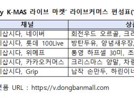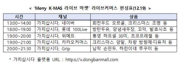 13시에 ‘가치삽시다’(네이버 쇼핑 라이브 동시송출 및 판매)에서 온라인 국민선정을 통해 뽑힌 4가지 크리스마스 시즌 우수 상품으로 라이브커머스 열전의 포문을 연다.