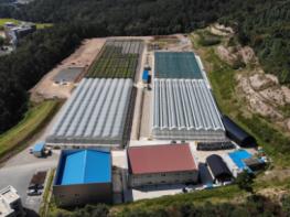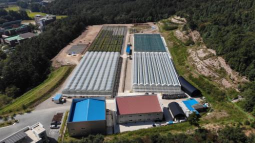 금년도 공사는 국비 약 14억 원을 들여 4연동 온실 1동(길이60m×폭34m), 야외시설 1동 1,920㎡(길이60m×폭32m) 및 장비고 1동(345㎡)을 조성하였으며 온실 및 관수 작동·제어는 자동화 설비로 작업의 편의성을 고려하였다.