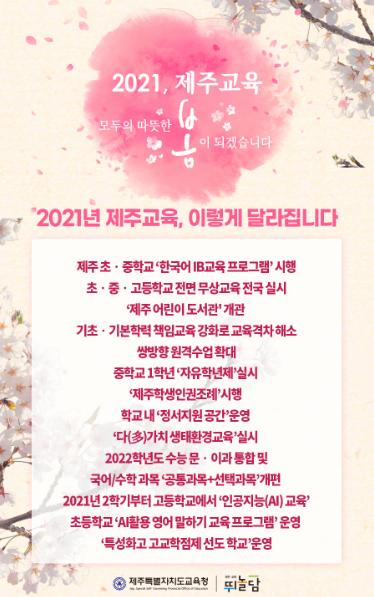 제주특별자치도교육청은 12월 31일 '2021년 제주교육 이렇게 달라집니다’를 발표했다.