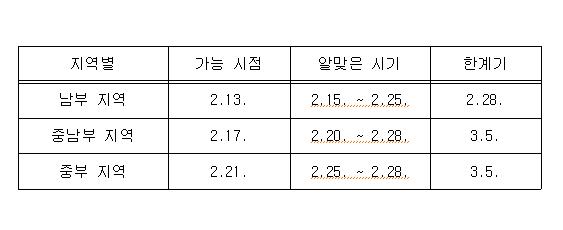신청한 보급종 종자는 1월 25일부터 2월 9일까지 신청 시에 선택한 지역농협을 통해 농가에 공급될 예정이다.