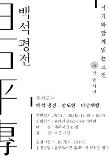 제주시 탐라도서관에서는 매월 작가가 선정한 한 편의 고전을 함께 읽고, 강연을 통해 해석을 공유하는「열 두달 고전 읽기」프로그램을 운영할 계획이다.