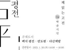 올해 1월의 고전은『백석 평전』(안도현, 다산책방)이며, 오는 1월 30일 14시에 박준 시인의 온라인 강연이 진행된다.