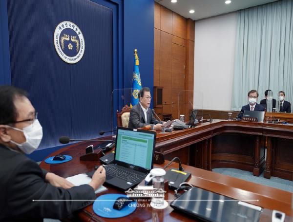 문재인 대통령은 19일 오전 10시부터 청와대 여민1관에서 서울·세종청사 국무회의실과 영상회의로 열린 국무회의를 주재했다.