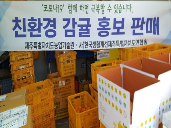제주특별자치도 농업기술원은 1월 12일부터 19일까지 (사)한국생활개선제주특별자치도연합회(회장 강옥자)와 함께 ‘코로나19 함께 극복하기 친환경 감귤 판매’ 행사를 개최하여 3,000박스의 감귤을 판매했다고 밝혔다.