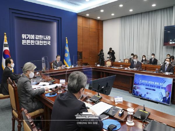 문재인 대통령은 "오늘 미국 바이든 신정부가 출범하는 계기에 NSC 전체회의를 열고, 이어서 외교부, 통일부, 국방부의 업무보고를 받고자 한다"고 말문을 연 뒤, "정부는 국민과 함께 바이든 신정부의 출범을 진심으로 축하한다"고 밝혔다.